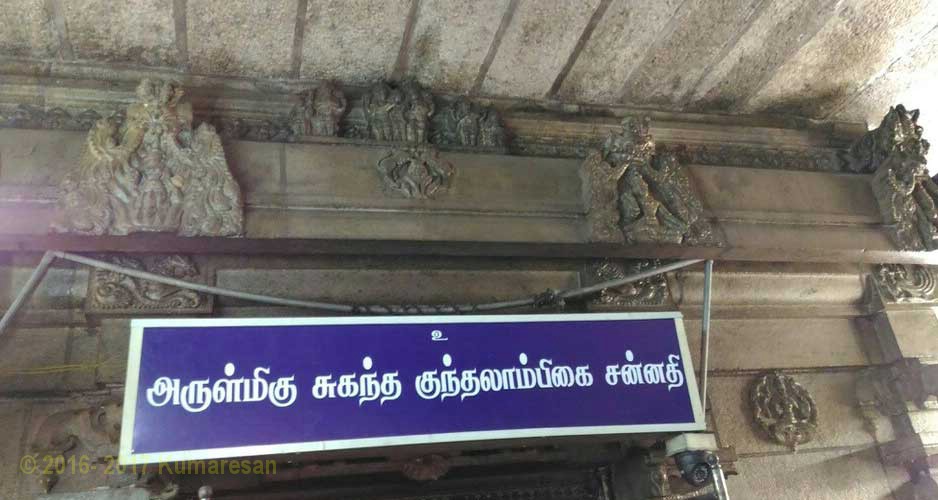 இறைவியார் திருப்பெயர் : குரவங்கமழ் குழலம்மை, சுகந்த குந்தளாம்பிகை,