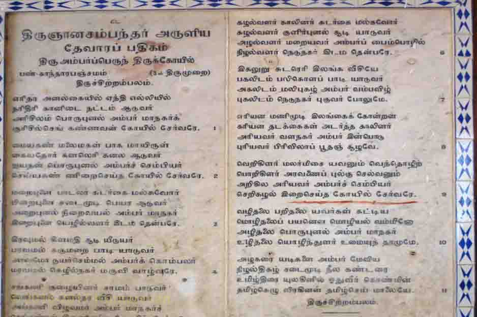 “எரிதர அனல்கையில் ஏந்தி யெல்லியில் நரிதிரி கானிடை நட்ட மாடுவர் அரிசிலம் பொருபுனல் அம்பர் மாநகர்க் குரிசில் செங்கண்ணவன் கோயில் சேர்வரே. !"