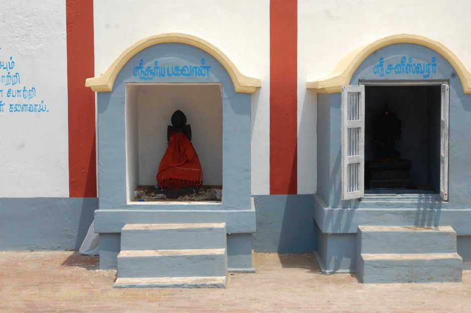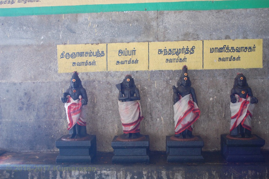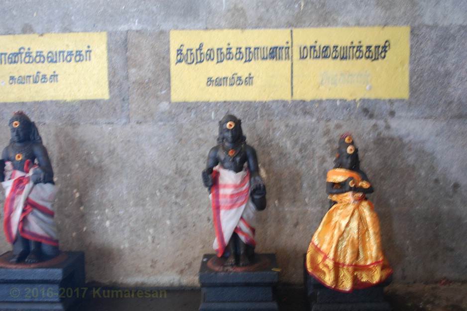 உள்வாயிலைக் கடந்து முன்மண்டபம் அடைந்து வலம் வரும்போது, வள்ளி தெய்வயானை சமேத சுப்பிரமணியர், மகாலட்சுமி, நால்வர் சந்நிதிகள் உள்ளன. அடுத்து 63 நாயன்மார்களில் ஒருவரான திரு நீலநக்க நாயனார், அவருடைய மனைவி ஆகியோரின் உருவங்கள் உள்ளன. சோமாஸ்கந்தர், மகாகணபதி சந்நிதிகளைத் தரிசித்துப் படிகளேறி உள்சுற்றில் நீலநக்கர், அவருடைய மனைவி, நடன சுந்தரர் முதலிய உற்சவத் திருமேனிகளைத் தரிசிக்கலாம். நடராச சபையில் அம்பலக்கூத்தர் அம்மை சிவகாமி மணிவாசகருடன் காட்சி தருகின்றார். சனீசுவரன், காகத்தின் மேல் ஒரு காலை ஊன்றியவாறு நின்ற கோலத்தில் உள்ளார்.