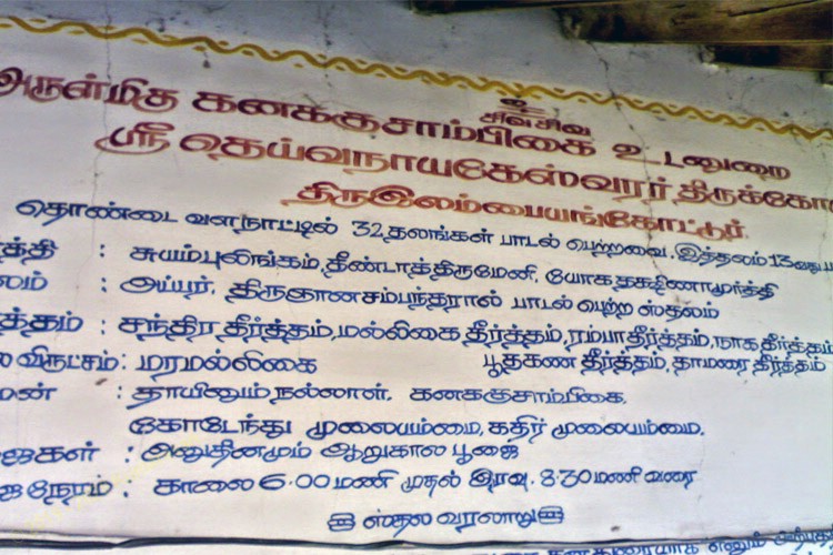 இணைந்து கொள்ள இறைவர் திருப்பெயர் : தெய்வநாதேஸ்வரர், சந்திரசேகரர், அரம்பேஸ்வரர்