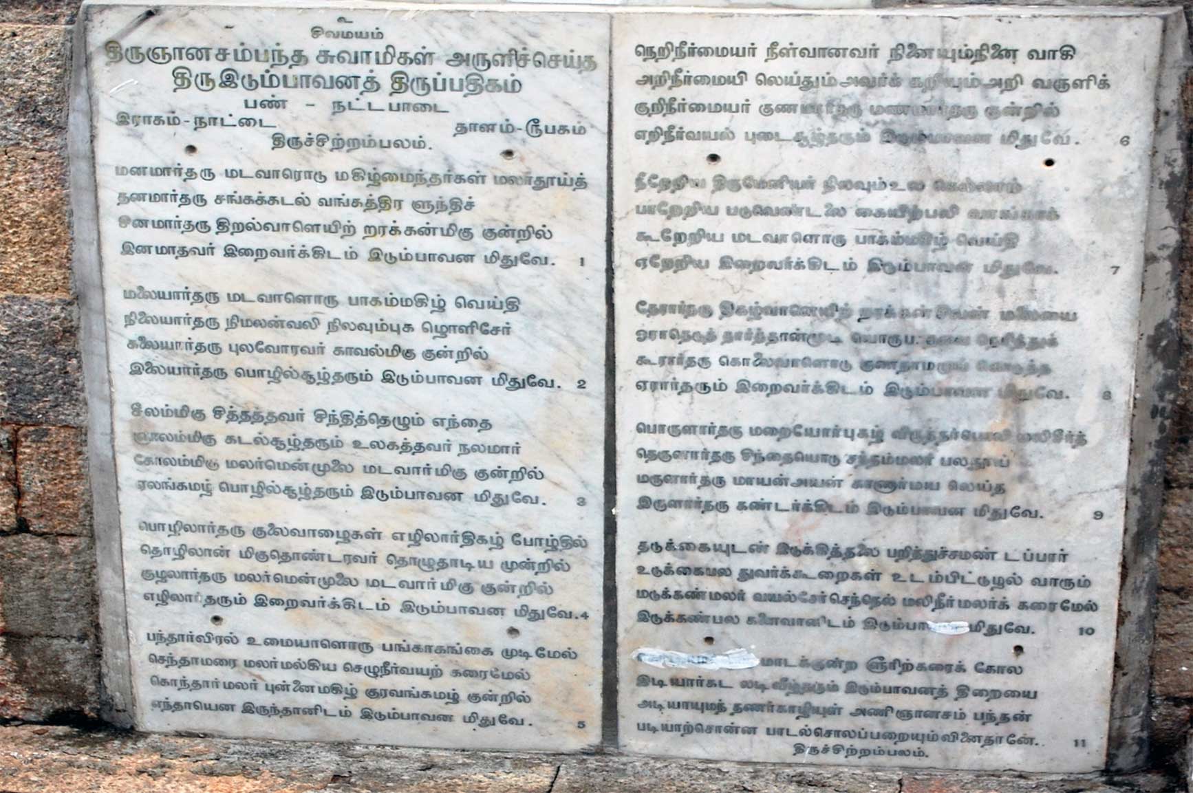 சம்பந்தர் இங்கு எழுந்தருளியபோது இவ்வூரின் மணலெல்லாம் லிங்கமாகத் தென்பட, கரங்களால் ஊன்றி வந்து ஆலயத்தை அடைந்து திருப்பதிகம் பாடியதாக கூறப்படுகிறது. அப்பரும் தனது ஷேத்திரக் கோவை திருத்தாண்டகத்தில் இத்தலத்தைக் குறிப்பிட்டுப் பாடியுள்ளார். திருஞானசம்பந்தர் இத்தலத்து இறைவன் மேல் பாடியருளியுள்ள பதிகம் ஒன்றாம் திருமுறையில் இடம் பெற்றுள்ளது.