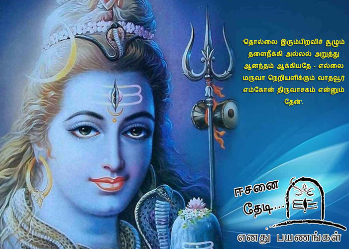 இந்த இணையதளம் சென்னை , திருவாரூர் மற்றும் கும்பகோணம் மாவட்டங்களை சுற்றிலும் அமைந்துள்ள...., நான் சென்று வந்த பிரபலமான பாடல் பெற்ற தலங்கள், பாடல் பெறாத தலங்கள் , மற்றும் வைப்புத் சிவதலங்களை பற்றிய தகவல்களை இங்கே தொகுத்து தந்திருக்கிறேன்.