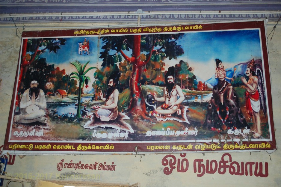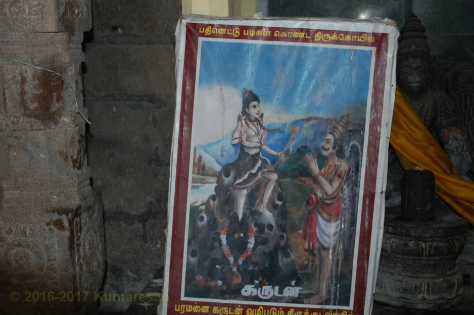 கருடன் பூசித்து, அமுதம் பெற்றுத் தானும், தன் தாயும் சாபம் நீங்கப் பெற்ற தலம். இதனால் திருமதிலின் மேல் கருடன் உருவங்கள் உள்ளன.கோச்செங்கணாரின் மாடக் கோயில்.அம்மன் கோயில் நிலமட்டத்தில் உள்ளது.