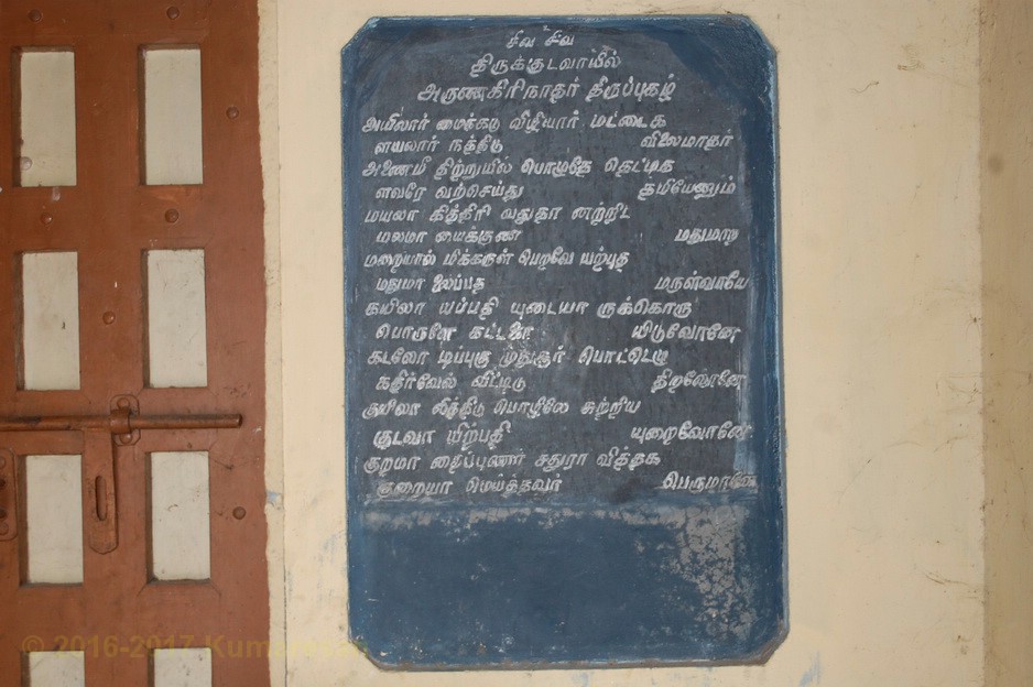 இத்தல முருகன் அருணகிரிநாதரால் திருப்புகழில் பாடப்பெற்றுள்ளார். திருப்புகழில் இரு பாடல்கள் உள்ளன உள் பிராகாரத்தில் வடமேற்கு மூலையில், மிகவும் பிரபலமான குடவாயில் குமரன் சந்நிதி உள்ளது.. மயில் மண்டபம், மகா மண்டபத்துடன் கூடிய சந்நிதியில், வள்ளி- தெய்வானையுடன் ஒரு திருமுகமும் நான்கு திருக்கரங்களும் உடையவராய் இவர் கிழக்கு நோக்கி எழுந்தருளியுள்ளார்.