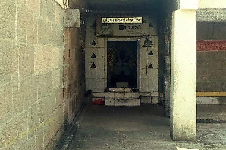 சுவாமி சந்நிதி விமானம் கஜப்பிரஷ்ட அமைப்புடையது. இரண்டு சந்நிதிகளையும் சேர்த்து வலம் வர பிரகாரம் உள்ளது. உட்பிரகாரத்தின் தென்மேற்கு மூலையில் அச்சிறுத்த விநாயகர் சந்நிதி அமைந்திருக்கிறது. அம்பாள் மற்றும் சுவாமி சந்நிதிகளுக்கு தனித்தனியே கொடிமரம், பலிபீடம் இருக்கின்றன. சுவாமி சந்நிதி நுழை வாயிலுக்கு முன் இருபுறமும் உள்ள துவாரபாலகர்கள் திரிபுராதிகள் மூவருள் இருவர் இவர்கள் என்று சொல்லப்படுகிறது.