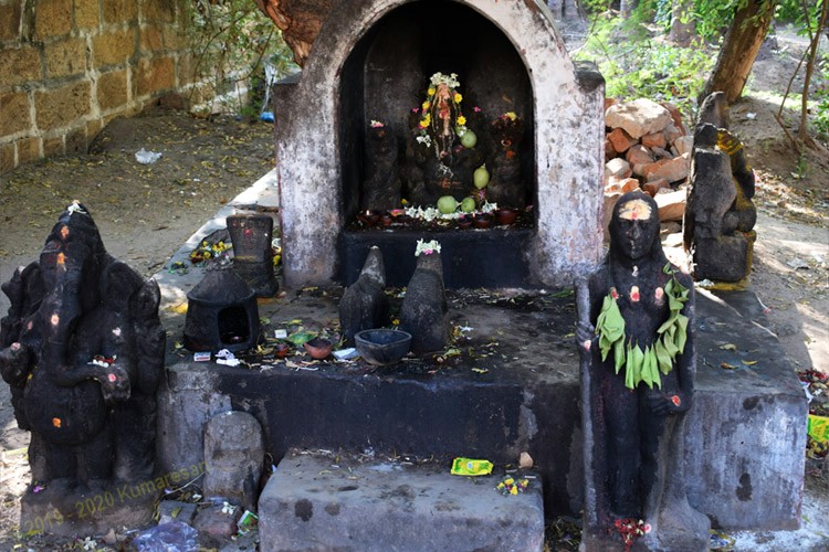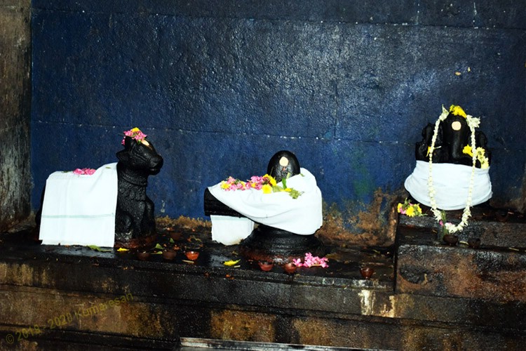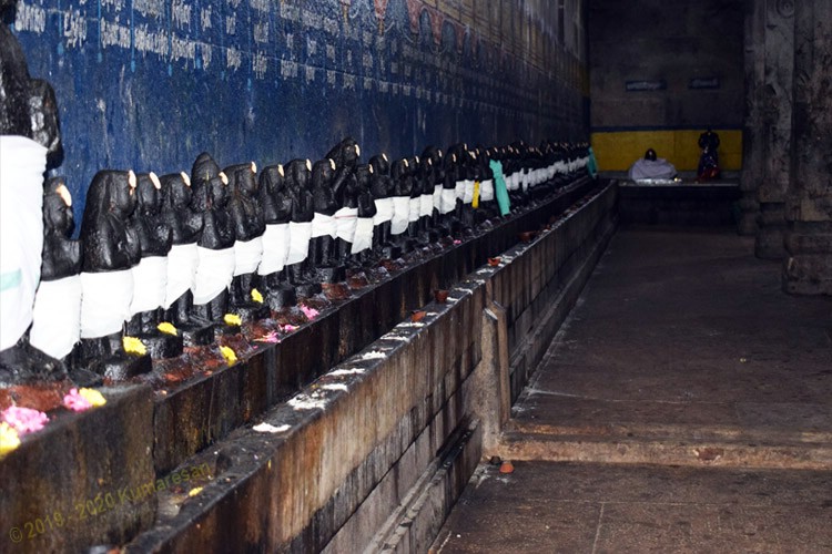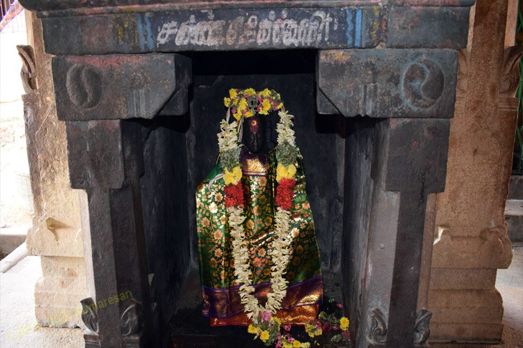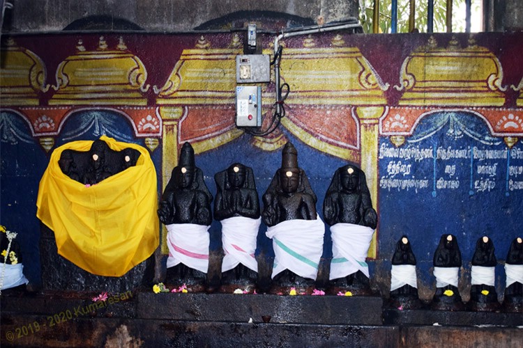 கருவறையில் லிங்கத்திற்கு பின்புறத்தில் சப்தகன்னியர்கள் இருக்கின்றனர்.