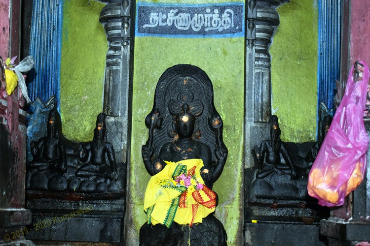 இங்குள்ள விநாயகர் அனுக்ஞை விநாயகர். இங்குள்ள விமானம் திரிதளம். கோஷ்டத்தின் பின்புறத்தில் தெட்சிணாமூர்த்தி தெற்கு பார்த்தபடி இருக்கிறார். வழக்கமாக தெற்கு நோக்கி இருக்கும் சண்டிகேஸ்வரர் மேற்கு முகமாகவும், வடக்கு பார்த்திருக்கும் பிரம்மா கிழக்கு முகமாகவும் இருக்கின்றனர்.