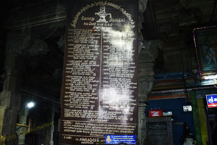 பிரகாரத்தில் உள்ள நவக்கிரக சன்னதியின் மேலே முருகன் வள்ளி, தெய்வானையுடன் இருக்கிறார். செவ்வாய் தோஷத்தால் பாதிக்கப்பட்டவர்கள் செவ்வாய்க்கு அதிபதியான முருகனையும், நவக்கிரகத்தில் செவ்வாயையும் வழிபடுகின்றனர். அருகே சனீஸ்வரருக்கு தனிச்சன்னதி இருக்கிறது.