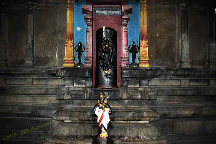 இவரது சன்னதிக்கு நேர் எதிரே, சிவன் கருவறை கோஷ்டத்தில் லிங்கோத்பவர் இருக்கிறார். இவருக்கு இருபுறமும் மகாவிஷ்ணு, பிரம்மா ஆகியோர் வணங்கியபடி இருக்கின்றனர். இக்கோயிலில் நடராஜர் சன்னதியில் இரண்டு நடராஜர்கள் இருக்கின்றனர். இவர்களில் ஒருவரது பாதத்தின் கீழ் முயலகன் இல்லை. இவரது தலையில் பிறைச்சந்திரன் இருக்கிறார்.
