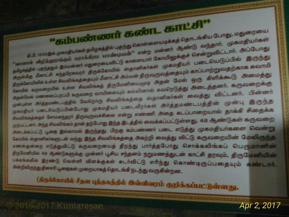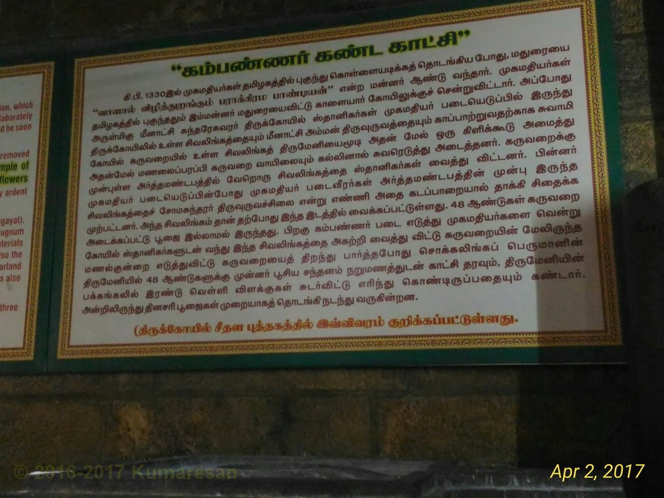 இத்தலத்தில் தான் முருகன் திருவருளால் ஊமைத் தன்மை நீங்கிய குமரகுருபரர் மீனாட்சி பிள்ளைத்தமிழ் அரங்கேற்றியதும், , திருவாதவூராருக்கு மாணிக்கவாசகர் என்ற பெயரை இறைவன் கொடுத்ததும் நிகழ்ந்தது.