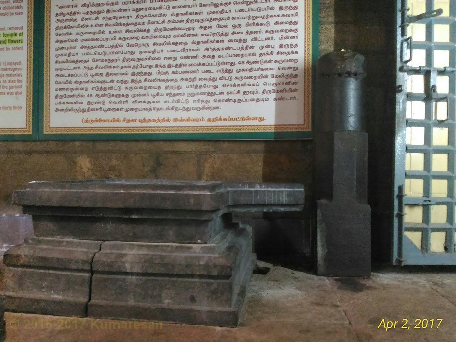 பிற்காலத்தில் மதுரையை ராஜசேகர பாண்டிய மன்னன் ஆண்டான். சிவபக்தனான அவன் ஆயகலைகளில், 63 ஐ கற்றுத்தேர்ந்தான். பரதம் மட்டும் பாக்கியிருந்தது. ஒரு சமயம் அவன் மற்றொரு மன்னனுடன் போட்டியிட வேண்டிய சூழ்நிலை வந்தது. எனவே, பரதம் கற்றுக்கொள்ள வேண்டிய கட்டாயம் ஏற்படவே, அதைக் கற்றான். முதல் நாள் பயிற்சி எடுத்த மன்னனுக்கு, காலில் கடும் வலி உண்டானது. அப்போதுதான் அவனுக்கு சுள்ளென ஓர் உண்மை உரைத்தது. பரதம் கற்க இன்று ஒருநாள் ஆடிய நமக்கே இப்படி வலிக்கிறதே! இங்கே எம்பெருமான் தொடர்ந்து ஒரே காலை மட்டும் ஊன்றியல்லவா ஆடிக்கொண்டிருக்கிறார்? அவருக்கு எவ்வளவு வலி இருக்கும்?” என நினைத்தவன், நடராஜர் சன்னதிக்குச் சென்றான்.