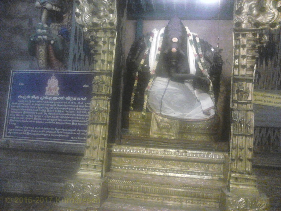முக்குறுணி விநாயகர்: தெற்கு கோபுர வாயில் வழியே உள்ளே நுழைந்தவுடன் நேரே நாம் காண்பது முக்குறுணி விநாயகர் சந்நிதி. கி.பி. 1623-1659 வரை மதுரையை ஆண்ட மன்னர் திருமலை நாயக்கர் தனக்கு அரண்மனை கட்டுவதற்காக வண்டியூர் தெப்பக்குளம் அருகே மண்ணை வெட்டியபோது, மண்ணில் புதையுண்டிருந்த இந்த விநாயகர் திருவுருச் சிலையை கண்டெடுத்து இங்கே கி.பி. 1645ல் பிரதிஷ்டை செய்தார். ஒரே கல்லினால் ஆன இவ்விநாயகரின் உயரம் 7 அடி. ஒவ்வொரு விநாயக சதுர்த்தியின் போதும் இந்த விநாயகருக்கு 18 படி (முக்குறுணி) அரிசியால் கொழுக்கட்டை தயார் செய்து படைக்கப்படுவதால் இவ்விநாயகர் முக்குறுணி விநாயகர் என அழைக்கப்படுகிறார்.
