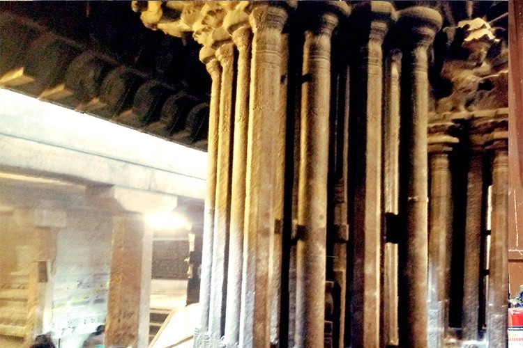 இரண்டாவது பிரகாரம் சற்றுப் பெரியது. ஆரம்பத்திலேயே "ஏழிசை ஸ்வரங்கள் இசைக்கும் தூண்கள்" உள்ளன. இவற்றைத் தட்டிப் பார்த்தால் ஸ்வரங்களின் ஒலி கேட்கும். இந்தப் பிரகாரத்தில் தான் "தாமிர சபை" உள்ளது. 63 நாயன்மார்களின் சிலைகள், அஷ்டலக்ஷ்மி, சனீஸ்வரர், சகஸ்ரலிங்கம் ஆகிய சிலைகளும் இருக்கின்றன.