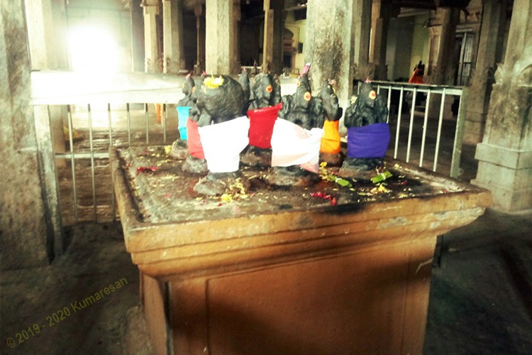 பிரகாரத்தில் சண்முகர் ஆறு முகங்களுடன் வள்ளி, தெய்வானையுடனும், நின்ற நிலையில் நவக்கிரகங்கள், மகாலட்சுமி ஆகியோர் தனித்தனி சன்னதிகளில் இருக்கின்றனர். பைரவர் எட்டு கைகளுடன் கால பைரவராக தெற்கு பார்த்தபடி இருக்கிறார்.