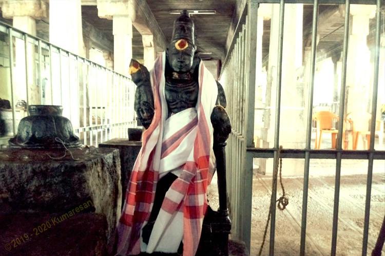 இரண்டு கண்களும் தெரியாமல் தட்டுத்தடுமாறியபடியே திருவாரூர் செல்லும் வழியில் இத்தலம் வந்தார் சுந்தரர். இங்கு சிவனிடம் தனக்கு கண்கள் தரும்படி கேட்டார். சிவனோ அமைதியாகவே இருந்தார். சுந்தரர் விடவில்லை.