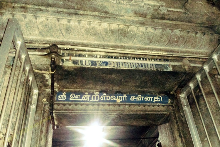 சுவாமி சந்நிதி, அம்பாள் சந்நிதி மற்றும் இதர சந்நிதிகள் எல்லாம் சற்று உயரமான மண்டபத்தினுள் அமைந்திருக்கின்றன. கிழக்கு வாயில் வழியாக உள்ளே சென்றால் நேர் எதிரே ஊண்றீஸ்வரர் சந்நிதி உள்ளது. இறைவன் கிழக்கு நோக்கி உள்ளார்.