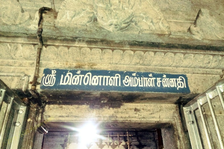 தெற்கு வாயில் வழியாக உள்ளே சென்றால் நேர் எதிரே அம்பாள் மின்னொளி அம்மை சந்நிதி தெற்கு நோக்கி உள்ளது. கண் பார்வை இழந்த சுந்தரருக்கு அவ்வப்போது மின்னலாகத் தோன்றி வழிகாட்டியதால் அம்பாளுக்கு மின்னொளி அம்மை என்று பெயர். சுவாமி மற்றும் அம்பாள் சந்நிதிகளை தனித்தனியாக வலம் வர வசதிகள் உள்ளன.