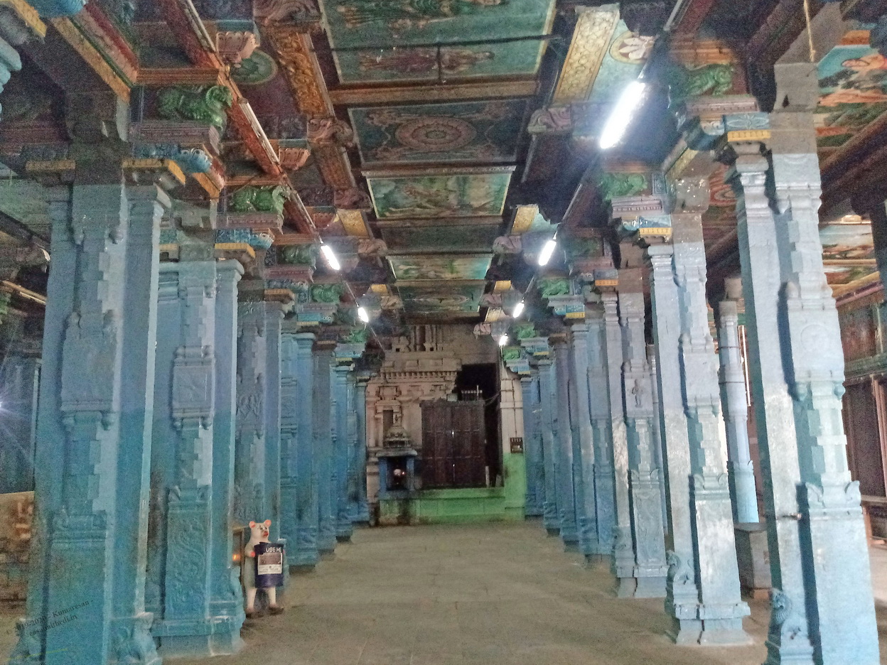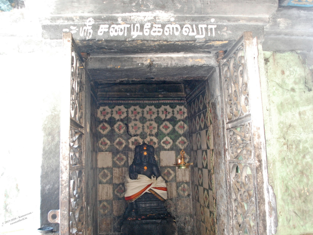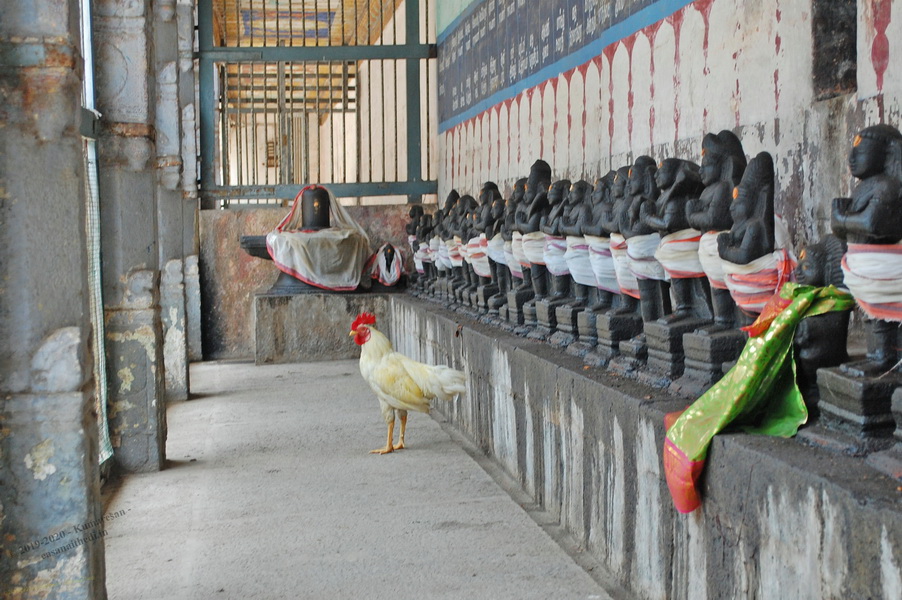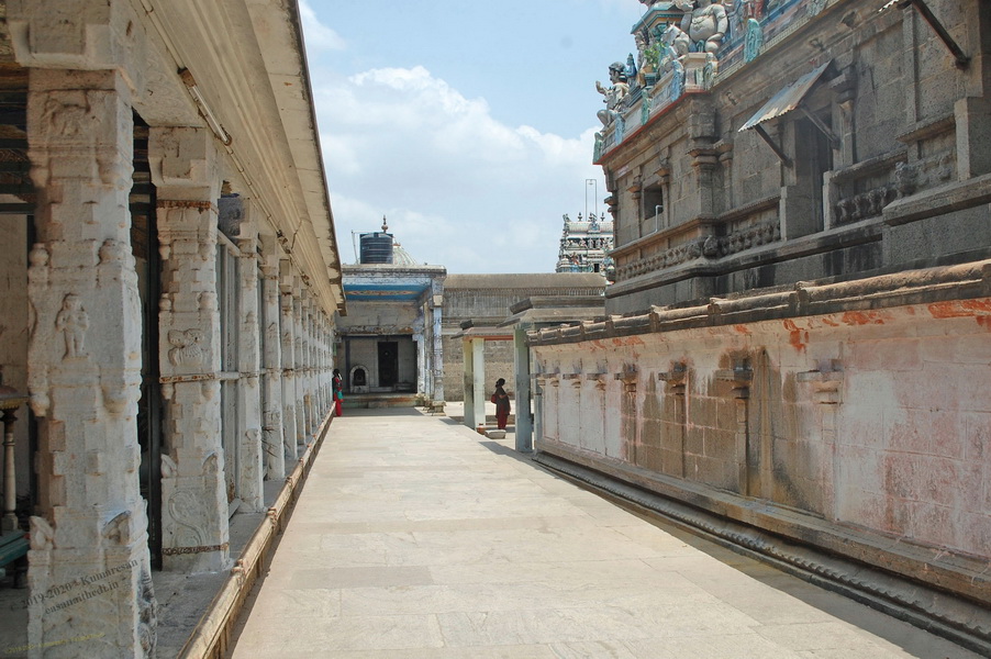 உள்வாயில் ஒருபுறம், ஸ்ரீவிநாயகர்; இன்னொரு புறத்தில் ஸ்ரீதண்டபாணி, உள்பிராகாரம். இங்கே தான் கொடிமரம் உள்ளது. ஸ்ரீவிநாயகர் மற்றும் அறுபத்து மூவர் மற்றும் சனீஸ்வரன் காட்சியளிக்கின்றனர், கருவறைச் சுவரில் வசிட்டரும் அவருடைய சீடர்களும் காமதேனுவும் வழிபடுவது போன்ற சிற்பம் உள்ளது..