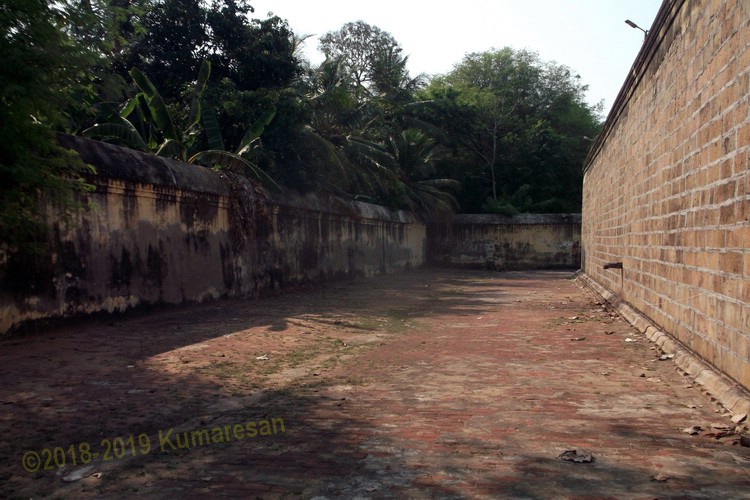 கருவறை மேற்கு சுற்றில் முதலில் உள்ள அறையில் நாகலிங்கம், காசி விஸ்வநாதர், விசாலாட்சி மற்றும் மனோன்மணி அம்பாள் விக்ரகங்கள் உள்ளன. அடுத்துள்ள சந்நிதியில் ஆறுமுகம், பன்னிரண்டு கைகள். கைகளில் நாககனி, வில், பாணம் மற்றும் பிற படைக்கலங்களோடு வள்ளி, தெய்வானையுடன் அசுரமயில் வாகனத்தில் முருகர் காட்சியளிக்கிறார். இதை அடுத்து ரிக், யஜுர், சாம, அதர்வண என்னும் நான்கு வேத சிவலிங்கங்கள் காணப்படுகிறது. அதையடுத்து கஜலட்சுமி விக்ரகம் இரு கால்களையும் தொங்கவிட்டுக் கொண்ட நிலையில் உள்ளது. இறுதியில் சனீஸ்வரனின் மனைவியான ஜேஷ்டாதேவி, மகன் மாந்தி, மகள் மாந்தாவுடன் உள்ள சிலை உள்ளது. மாந்தாவின் கையில் தாமரை மலரும், மாந்தியின் முகம் ரிஷப முகமாயும், இம்மூன்றும் ஒரே கல்லில் செதுக்கப்பட்டு அற்புதமாய் காட்சியளிக்கிறது. வடக்குச் சுற்றில் கோயிலின் தல விருட்சமான பிரம்பு மரம் உள்ளது. அடுத்து அஷ்டபுஜ துர்க்கை சந்நிதியும், அதையடுத்து சண்டிகேஸ்வரர் தனிச்சந்நிதியும், அருகில் புஷ்கரணியும் (கிணறு) உள்ளது. இதைக்கடந்து சென்றால் பிரம்மாவுக்கு என்று ஒரு சிறு தனிச்சந்நிதி உள்ளது.