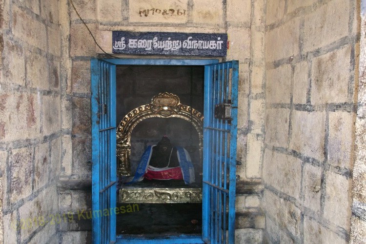 இத்தல விநாயகர் கரையேற்று விநாயகர் என்ற திருநாமத்துடன் அருள்பாலிக்கிறார். இங்குள்ள மூலவர் ஐந்து நிலை ராஜகோபுரத்தின் கீழ் அருள்பாலிக்கிறார். உள்பிரகாரத்தில் கரையேற்று விநாயகர், கற்சிலை நடராஜர், சப்தரிஷிகள், அகத்தியர், சித்திரகுப்தர், யமன் முதலிய சன்னிதிகள் உள்ளன.