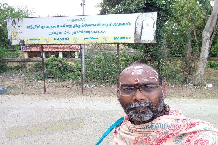 ஒரு நாள் மாலை, திருக்கோடிக்கா ஆலயத்தில், ஸ்ரீ திருக்கோடீஸ்வரர் தரிசனத்தை முடித்துக் கொள்ளும் சமயம் பேய்மழை அடிக்க ஆரம்பித்து விட்டது. வெளியே புறப்பட முடியவில்லை. ஒரே இருட்டு வேறு, அவருக்கு நல்ல பார்வையும் கிடையாது. அர்த்த ஜாமம் நெருங்கிக் கொண்டிருக்கிறது
