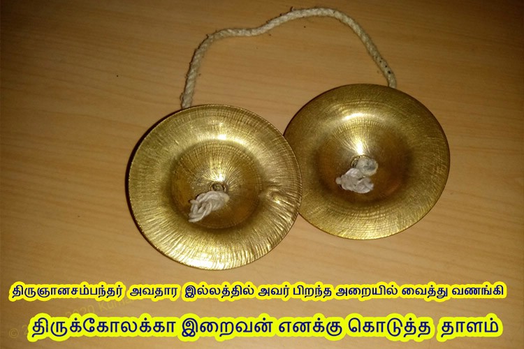 சிதம்பரத்தில் எனக்கு வாங்கிய தாளத்தை சீர்காழியில் சம்பந்தர் இல்லத்தில் அவர் பிறந்த அறையில் வைத்து வணங்கி பிறகு திருக்கோலகா சென்று