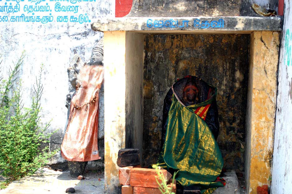 அம்பாள் சன்னதிக்கும், சுவாமி சன்னதிக்கும் இடையில் வெள்ளைக்கல்லால் செய்யப்பட்ட மிகப்பழமையான "ஜேஷ்டாதேவி' அருள்பாலிக்கிறாள். ஜேஷ்டா என்றால் மூதேவி என்று அர்த்தம். இத்தலத்தில் ஜேஷ்டாதேவி அனுக்கிரக தேவதையாக இருக்கிறாள். ஜேஷ்டாதேவி எனப்படும் தெய்வம் திருச்சி, தஞ்சாவூர் மாவட்டங்களில் காணப்படுவாள். ஸ்ரீதேவியான (சீதேவி) லட்சுமியின் சகோதரியான இவள் மூதேவி (மூத்ததேவி) என்றும் சொல்லப்படுவாள். இவளை யாரும் தரிசிப்பதில்லை. ஆனால், இவள் வழிபாட்டுக்கு உரியவள். சோம்பல் இல்லாத சுறுசுறுப்பான வாழ்வைத் தர வேண்டும் என இவளிடம் பிரார்த்திக்க வேண்டும். இவ்வாறு அனுக்கிரகம் அருளும் மூர்த்தியாக இவள் அருள்பாலிக்கிறாள்.