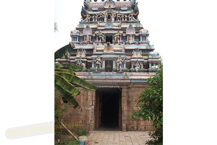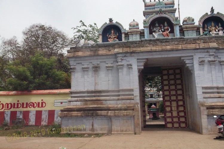 ஒரு முகப்பு வாயிலுடன் இவ்வாலயம் உள்ளது. முகப்பு வாயிலுக்கு எதிரே பிரம்ம தீர்த்தம் உள்ளது. முகுப்பு வாயிலில் மேலே அமர்ந்த நிலையில் சிவன் பார்வதியும், அவர்களின் ஒருபுறம் விநாயகரும், மறுபுறம் வள்ளி தெய்வானையுடன் முருகரும் சுதை வடிவில் காணப்படுகின்றனர்.