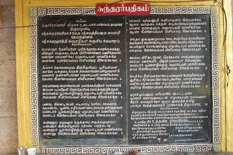 சுந்தராம்பிகை, அழகம்மை என்று அழகு தமிழிலும் அழைக்கப்படுகிறார். சருமநோய்களைப் போக்கும் வரப்பிரசாதி இந்த அம்பிகை. நாள்பட்ட சருமநோய்களால் பாதிக்கப்பட்டவர்கள், பங்குனி மாதம் நான்கு அல்லது ஐந்து செவ்வாய்க்கிழமைகள் இந்தத் தலத்துக்கு வந்து, ஆற்றிலும் கோயில் தீர்த்தத்திலும் நீராடிவிட்டு, ஈரப்புடவையுடன் ஒன்பது முறை அம்பாளை வலம்வந்து, உப்பும் மிளகும் போட்டு வேண்டிக் கொண்டால், நாள்பட்ட சரும நோய்களும் அதனால் ஏற்பட்ட சங்கடங்களும் நீங்கும் என்பது ஐதீகம். குழந்தை பாக்கியம் வேண்டும் பக்தர்கள், கோயிலில் உள்ள சோமாஸ்கந்தருக்கு வெள்ளை வஸ்திரமும் ரோஜாப்பூ மாலையும் சாத்தி, 11 நெய்தீபம் ஏற்றி வழிபட்டால், குழந்தை பாக்கியம் கிட்டும் என்பதும் பக்தர்களின் நம்பிக்கை.