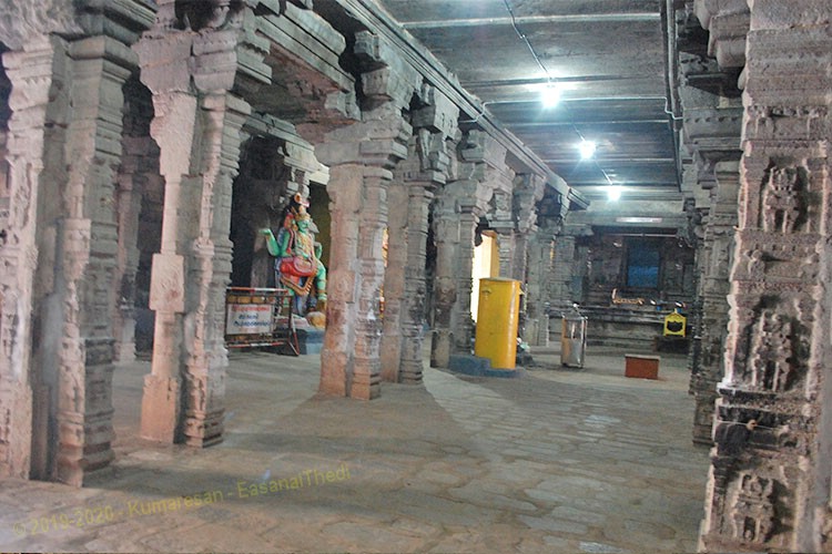 மூலவர் வயிரத்தூண் நாதர் சிவலிங்கத் திருமேனி புருஷாமிருகத்தால் பிரதிஷ்டை செய்யப்பட்டு வழிபடப் பட்டதாகும். இந்திரன், திருமால் ஆகியோர் வழிபட்ட சிறப்புடையது இத்தலம். பிராகாரத்தில் அகோரவீரபத்திரர், விநாயகர், முருகர் ஆகியோர் காட்சி தருகின்றனர். மூன்றாவது வாயிலைக் கடந்தால் மகா மண்டபத்தை அடையலாம். கருவறையும் சோமாஸ்கந்தர் கோயிலும் இணைந்து பெரிய கோயிலாகக் காட்சியளிக்கின்றன.