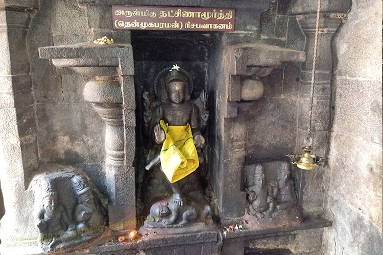 ஒரே கல்லால் ஆன சோமாஸ்கந்தர் தனி சன்னதியில் அருளுகிறார். இங்குள்ள பிரம்மனுக்கு எதிரில் நான்கு வேதங்களும் நான்கு நந்திகளாக அமர்ந்துள்ளன. சிவன் பிரகாரத்தில் இரண்டு தெட்சிணாமூர்த்திகள் உள்ளனர்.