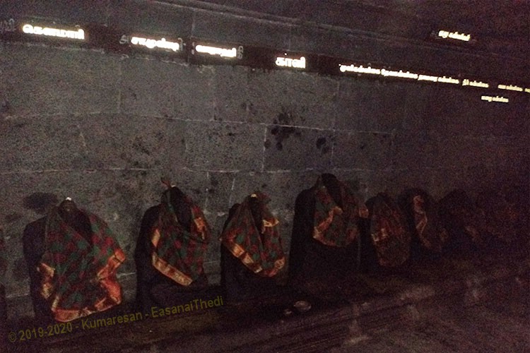 பக்தர்கள் சிவனுக்கும் நந்திக்கும் நடுவில் இருக்கும் மூன்று குழிகளை நவக்கிரகங்களாக கருதி, அவற்றில் தீபமேற்றி வணங்குகின்றனர். இந்தத் தலத்தில் இருந்த நவகிரகங்களை ஈசன் தம் நெற்றிக்கண்ணால் அழித்துவிட்டராம். அதன் காரணமாக முக மண்டபத்தில் உள்ள மூன்று குழிகளையே நவகிரகங்களாக பாவித்து வழிபடுகின்றனர். சரும நோயினால் அவதிப்பட்ட சந்திரன், இந்தத் தலத்து இறைவனை வழிப்பட்டான். சந்திரனுக்குக் காட்சி அளித்த இறைவன், நவகிரகக் குழிகளில் நெய்விளக்கு ஏற்றி வழிபடும்படி கூறினார். சந்திரனும் அப்படியே செய்து சருமநோய் தீரப்பெற்றதாகத் தலவரலாறு. சிபி சக்கரவர்த்தியின் நவகிரக தோஷமும் நீங்கியதாகச் சொல்லப்படுகிறது. சனிக்கிழமைகளில் இந்தக் குழிகளுக்கு முன்பாக எள் எண்ணெய் தீபம் ஏற்றி வழிபட்டால் நவகிரக தோஷங்கள் நீங்கும் என்பது ஐதீகம். ார்க்கண்டேய முனிவர், வைகாசி விசாகத்தில் மழுவேந்திய கோலத்தில் காட்சி தருகிறார். இத்தலத்திற்கு மழுவாடி என்ற பெயரும் உண்டு.