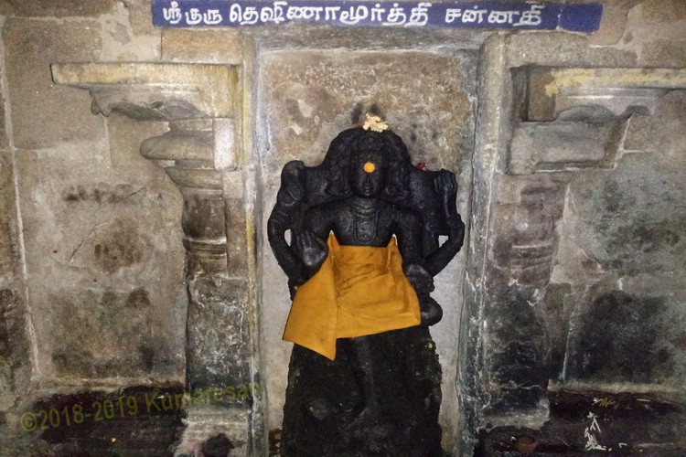 சோழர்காலத் திருப்பணியைப் பெற்ற இக்கோயிலின் ராஜகோபுரம் ஐந்து நிலைகளையுடன் மேற்கு நோக்கி காட்சி தருகிறது. கோபுர வாயில் வழியே உள்ளே நுழைந்தால் நேரே கவசமிட்ட கொடிமரம். கொடிமரத்து விநாயகர். பலிபீடம், நந்தி ஆகியவற்றைக் காணலாம். ஆலயத்தில் இறைவன் கருவறையில் லிங்க உருவில் மேற்கு திசை நோக்கி காட்சி தருகிறார். இவ்வாலயத்தில் இறைவன் கருவறைச் சுற்றில் கோஷ்டத்தின் தென்திசையில் ஒரு தட்சிணாமூர்த்தியும், மேற்கு திசையில் மற்றொரு தட்சிணாமூர்த்தியும் காணப்படுகின்றனர். மேற்கு திசையில் உள்ள தட்சிணாமூர்த்திக்கு எதிரே நவக்கிரக சந்நிதி உள்ளது.