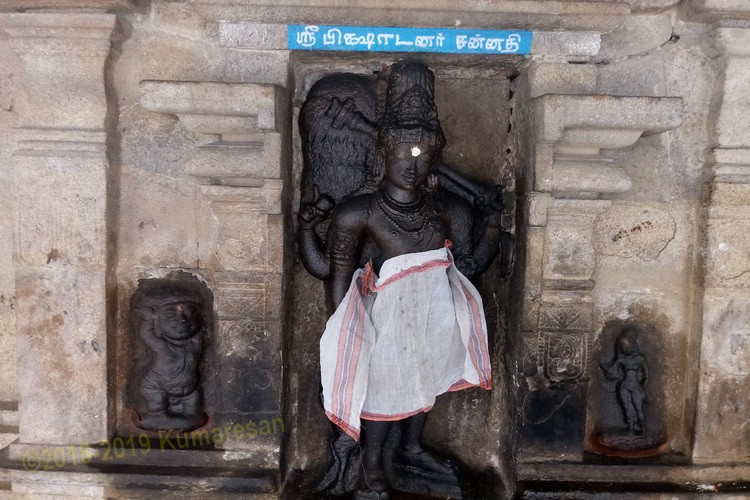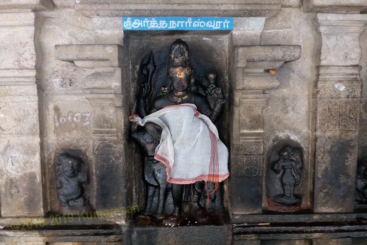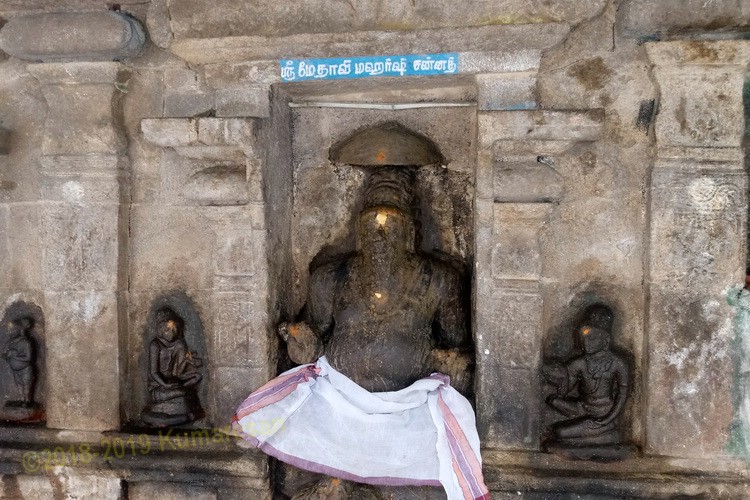 ரிஷபத்தின் தலை மீது வலது கையை ஊன்றியபடி காட்சி தரும் அர்த்தநாரீஸ்வரர் சிற்பமும், பிச்சாடனர் சிற்பமும் பார்த்து ரசிக்க வேண்டியவை. கோஷடத்திலுள்ள லிங்கோத்பவர் உருவச்சிலையும் கலை அழகுடன் காணப்படுகிறது. பிரகாரத்தில் ஒரே சந்நிதிக்குள் மூன்று சண்டிகேஸ்வரர்கள் இருப்பதும் இங்கு சிறப்பாகும். மேதாவி மகரிஷி இத்தலத்தில் இறைவனை வழிபட்டு லட்சுமியை மகளாகப் பெற்று பின்பு அவளை மகாவிஷ்ணுவிற்கு மணம் முடித்த தலம் இதுவாகும். மேதாவி மகரிஷிக்கு இத்தலத்தில் தனி சந்நிதி உள்ளது.