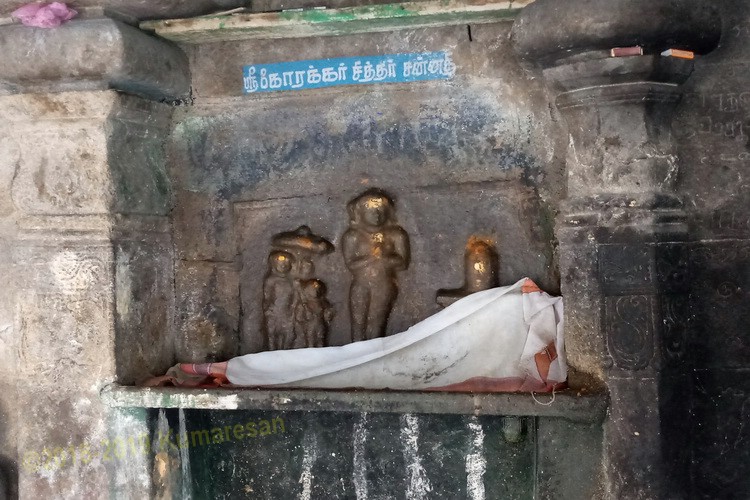கோரக்க சித்தர் வழிபாடு: சித்தர்களில் ஒருவரான கோரக்கருக்கு, தேவர்களின் சாபத்தால் தோல்வியாதி உண்டானது. நோய் நீங்க அவர் இங்கு சுவாமியை வழிபட்டார். சிவன் அவருக்கு காட்சி தந்து நோயை நீக்கி அருள்புரிந்தார். கோரக்க சித்தருக்கு அருள்புரிந்தவர் என்பதால் இவர், "சித்தநாதேஸ்வரர்' என்று பெயர் பெற்றார். சுவாமி கோஷ்டத்தில், சிவவழிபாடு செய்யும் கோரக்கர் சிற்பம் இருக்கிறது. அருகிலேயே இங்கு தவமிருந்த மேதாவி மகரிஷியும் இருக்கிறார். தோல் வியாதி உள்ளவர்கள் கோரக்கருக்கு, பவுர்ணமி மற்றும் வியாழக்கிழமைகளில் நல்லெண்ணெய் அபிஷேகம் செய்து, உடலில் பூசிக் கொள்கிறார்கள். இதனால் நோய் நீங்குவதாக நம்பிக்கை.
