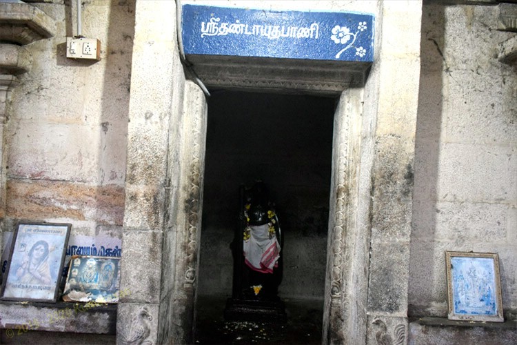 முருகன் வள்ளி, தெய்வானையுடன் தனிச்சன்னதியில் இருக்கிறார். இவரை குறித்து அருணகிரியார் திருப்புகழில் பாடியுள்ளார். இவருக்கு அருகில் மற்றொரு சன்னதியில் இருக்கும் தண்டாயுதபாணி காலில் செருப்பு அணிந்த கோலத்தில் இருக்கிறார்.