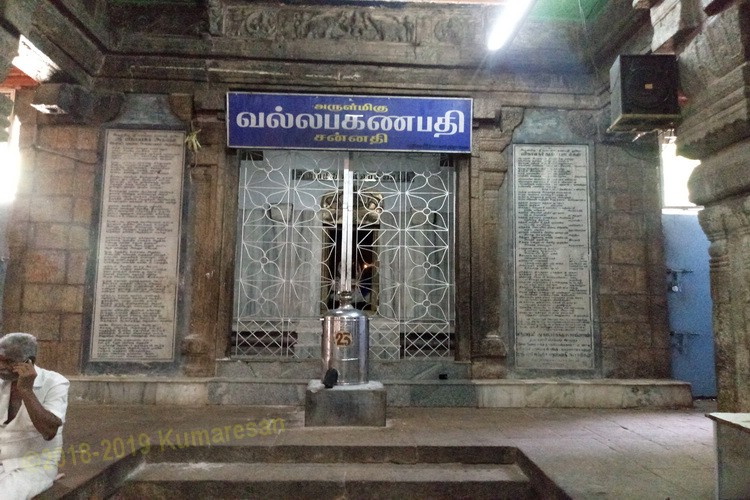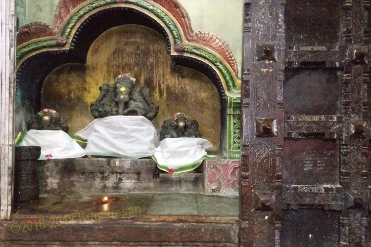 இவரது வலது மேற்பகுதியில் பஞ்சமுக விநாயகர், இடது மேற்புறம் முருகன் இருவரும் இருக்கின்றனர். பஞ்சமுக விநாயகரைச் சுற்றிலும் மேலும் எட்டு விநாயகர்கள் இருக்கின்றனர். எண்திசைகளை குறிக்கும்விதமாக இந்த விநாயகர்கள் இருப்பதாக சொல்கின்றனர். இக்கோயில் தொல்பொருள் ஆய்வுத்துறையினரின் கட்டுப்பாட்டில் உள்ளது.