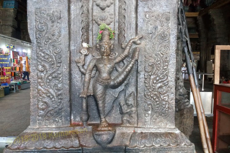 சிவனுக்கு நேரே நந்தி இருக்கவேண்டிய இடத்தில் மகாவிஷ்ணு இருக்கிறார். இது அபூர்வமான அமைப்பாகும்.