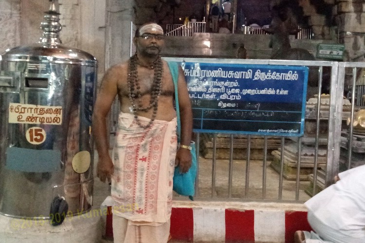 திருமண கோலத்தில் முருகன்: அறுபடை வீடுகளில் இத்தலம் முதல் படை வீடாகும். மற்ற ஐந்து தலங்களில் நின்ற கோலத்தில் அருளும் முருகன், இங்கு தெய்வானையை மணம் முடித்த கோலத்தில் அமர்ந்தபடி காட்சி தருகிறார். இவரது அருகில் நாரதர், இந்திரன், பிரம்மா, நின்றகோலத்தில் வீணையில்லாத சரஸ்வதி, சாவித்திரி ஆகியோரும், மேலே சூரியன், சந்திரன், கந்தர்வர்களும் இருக்கின்றனர். சுப்பிரமணியருக்கு கீழே அவரது வாகனமான யானை, ஆடும் உள்ளது. சுவாமி சுதையாக இருப்பதால் புனுகு மட்டும் சாத்தப்படுகிறது.