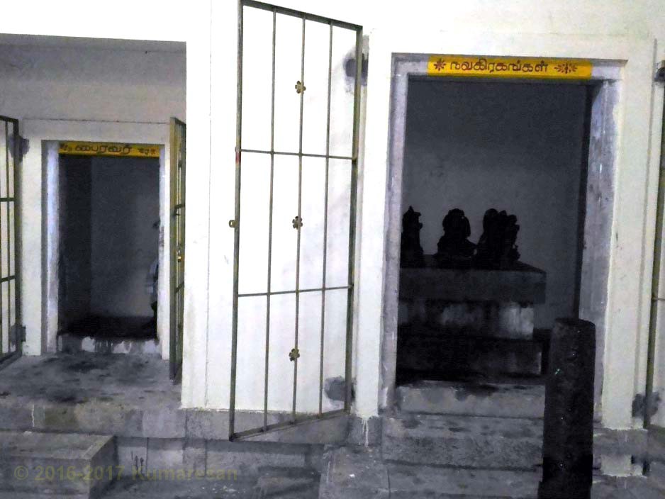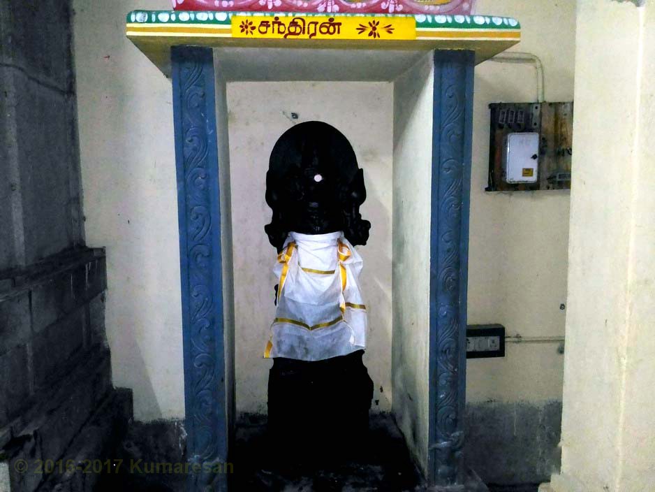 தெட்சிணாமூர்த்தி: கருவறை சுற்றுச்சுவரில் தெட்சிணாமூர்த்தி வீணை வாசிக்கும் கோலத்தில் இருக்கிறார்.
