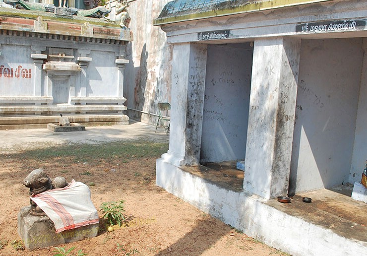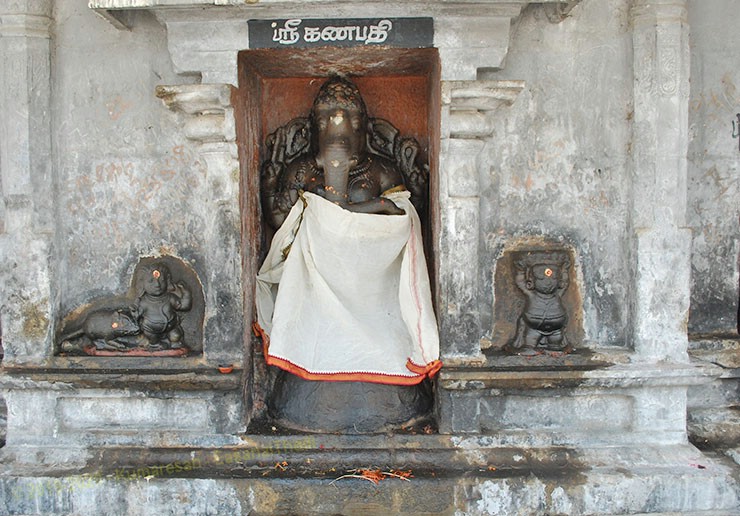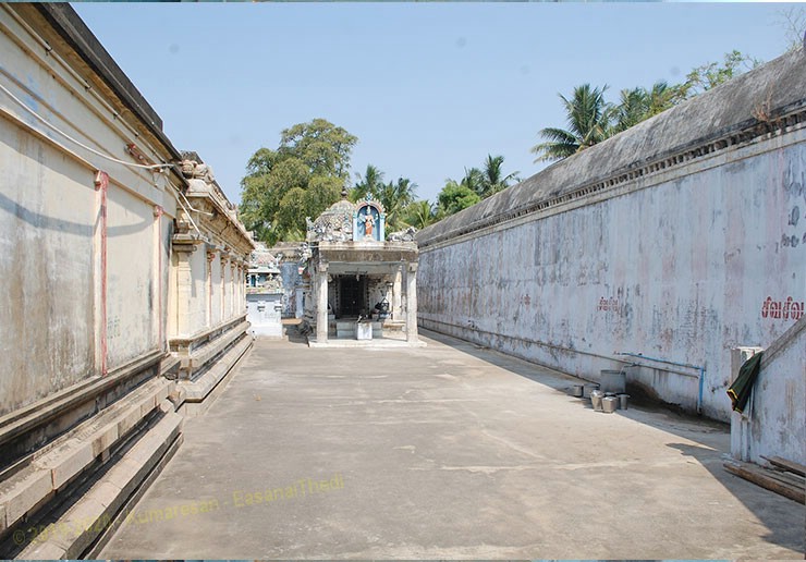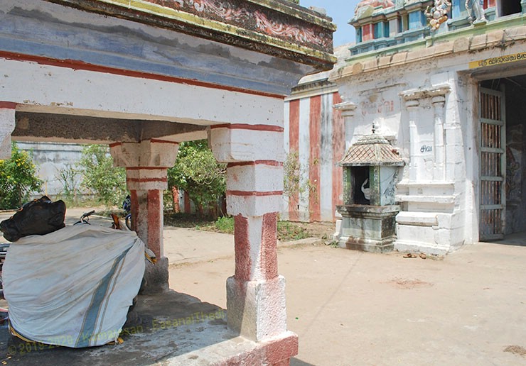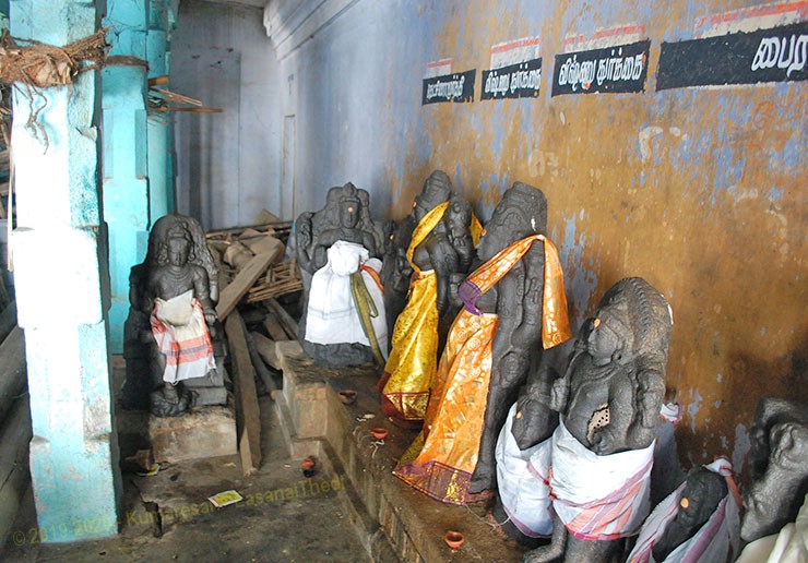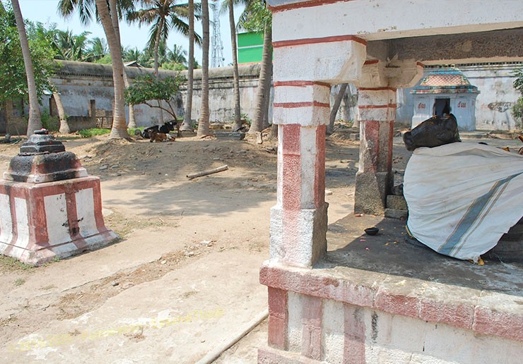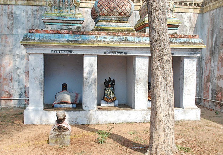 வெளிப் பிராகாரத்தில் சப்தகன்னியர் சன்னதியும், சுந்தரமூர்த்திவிநாயகர் சன்னதியும், ஒரே கல்லில் மயில், திருவாட்சி ஆகியன ஒன்றாக அமைந்த வள்ளி தெய்வானையுடன் கூடிய ஆறுமுகப்பெருமான் சன்னதியும் உள்ளன.கை ரேகை, நகம் எல்லாமே அந்த சிற்பத்தில் தெளிவாக தெரியும்.இதில் இச் சந்நிதியில் மயிலின் முகம் திசை மாறியுள்ளது மற்றோர் சிறப்பு. மகாமண்டபத்தில் விநாயகர், பிரம்மா, விஷ்ணு, வீணா தட்சிணாமூர்த்தி மூலத் திருவுருவங்கள் உள்ளன.
