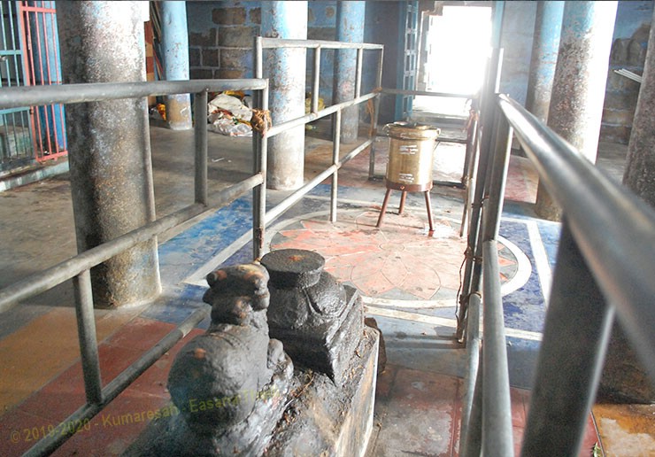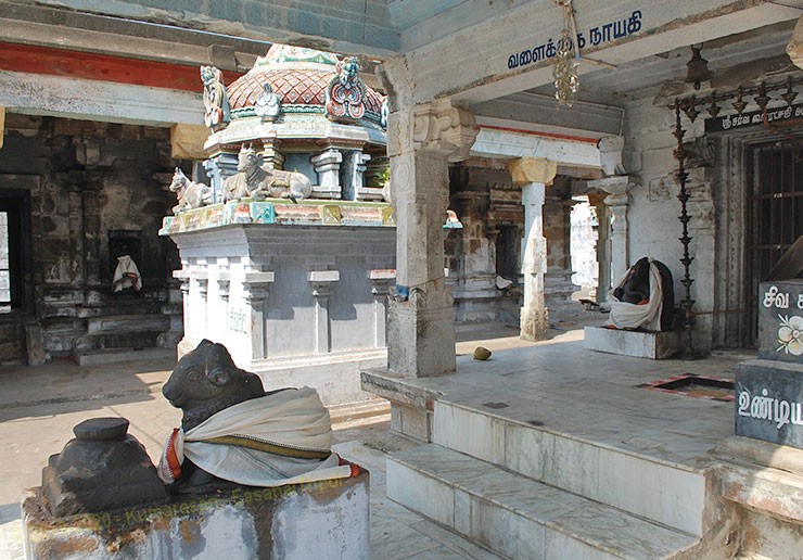 அனைத்து நந்திகளும் எதிர் திசையில் நம்மைப் பார்த்து உள்ள ஒரே தலம், இங்குள்ள நந்திகள் அனைத்தும் இறைவனை நோக்கி இல்லாமல், வாசலைப் பார்த்தபடி உள்ளது. யமன் மறுபடி உள்ளே வராமல் இருப்பதற்காக அவ்வறு இருப்பதாக ஐதீகம்.