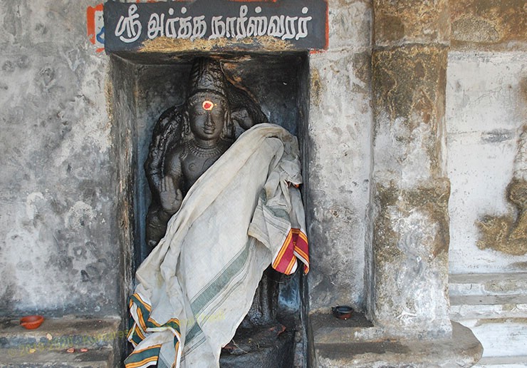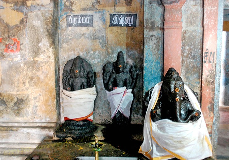 பிரம்மாவும் விஷ்ணுவும் இத்தலத்தில் இருப்பதால் மும்மூர்த்திகள் தலம் என்று போற்றப்படும் தலம் இது. அர்த்தமண்டபத்தில் வாயிற்படியின் இருபுறங்களிலும் விஷ்ணுவும், பிரம்மனும் எங்குமே காணப்படாத நிலையில் துவாரபாலகர்களாக நிற்கிறார்கள்.
