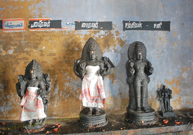 கோஷ்ட மூர்த்தமாக உள்ள தட்சிணாமூர்த்தி அழகான திருவுருவம். லிங்கோத்பவரும், அர்த்தநாரீஸ்வரரும், பிரம்மாவும் கோஷ்டத்தில் உள்ளனர். துர்க்கைக்கு எதிரில் இரு சண்டேஸ்வரர் திருமேனிகள் உள்ளன. திருமால், நாராயணி, பைரவர், சூரியன், சந்திரன், சனிபகவான் முதலிய மூலத் திருமேனிகள் உள்ளனர்.