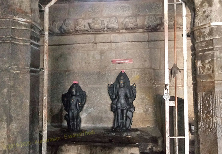 சுவாமி சன்னிதி முதல் பிரகாரத்தில் உள்ளது. அந்தத் திருச்சுற்றிலேயே உமாமகேஸ்வரர், சங்கர நாராயணர், பரிவார மூர்த்தங்கள், பிரம்ம தேவர், திரிபுரசுந்தரி எழுந்தருளியுள்ளனர். இரண்டாம் பிராகாரத்தில் சோமாஸ்கந்தர் ஆலயம், அருகில் ஜப்பேசுர மண்டபம் உள்ளது. அதில் பஞ்சபூத லிங்கங்கள், சப்த மாதாக்கள், ஆதிவிநாயகர், நவகிரகங்கள் எழுந்தருளியுள்ளனர்.