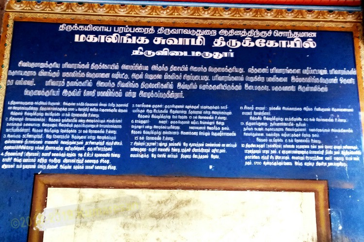 மூல லிங்க தலம்: ஆலய அமைப்பு முறைப்படி திருவலஞ்சுழி-விநாயகர் , சுவாமிமலை-முருகன் , சேய்ஞலூர்-சண்டேசுரர் , சூரியனார்கோயில்-சூரியன் முதலான நவகோள்கள், சிதம்பரம்-நடராஜர் , சீர்காழி-பைரவர், திருவாவடுதுறை-திருநந்தி ஆகிய பரிவாரத் தலங்களுடன் அவற்றின் நடுவில் மூல மூர்த்தியாக இக்கோயிலில் நடுநாயகமாக ஸ்ரீ மகாலிங்கப் பெருமான் விளங்குகின்றார் என்பது சிறப்பு வாய்ந்த அம்சமாகும்.