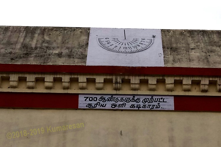 சூரிய கடிகாரம்: கோயிலின் தென்புற மதில் சுவர் அருகே சுமார் 700 ஆண்டுகளுக்கு முற்பட்ட சூரிய ஒளி கடிகாரம் அமைந்துள்ளது. காலையில் சூரியன் உதிப்பதிலிருந்து மாலையில் சூரியன் மறையும் வரை சூரியன் செல்லும் பாதையைக் கணக்கிட்டு இந்த கடிகாரம் அமைக்கப்பட்டுள்ளது. அரை வட்ட கோளம் அமைக்கப்பட்டு அதைச்சுற்றிலும் காலை 6 முதல் மாலை 6 மணிவரை எண்கள் செதுக்கப்பட்டுள்ளன. இதன் நடுவே பித்தளையால் ஆன ஆணி ஒன்று பொருத்தப்பட்டுள்ளது. சூரியனின் ஒளி இந்த ஆணியில் பட்டு அதன் நிழல் எந்த எண்ணில் விழுகிறதோ அதுவே அப்போதைய நேரம் ஆகும். தமிழர்கள் வானவியல் அறிவியல் வல்லுனர்களாக திகழ்ந்தார்கள் என்பதற்கு இது எடுத்துக்காட்டு.