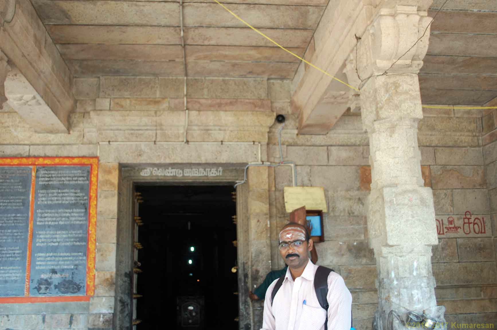பிருங்கி முனிவர் வண்டு உருவில் இறைவனின் திருமேனியின் இடையில் துளைத்துச் சென்று அவரை மட்டும் வலம் வந்தமையால், அம்பிகை சாபம் தர, வண்டு உருவில் இருந்து இங்கு வழிபட்டார் என்பது வரலாறு. (கருவறையில் வண்டின் ரீங்கார ஒலி கேட்பதாகப் பண்டை நூல்களில் சொல்லப்பட்டிருக்கிறது. ஆனால் தற்போது கேட்கவில்லை.)