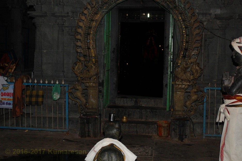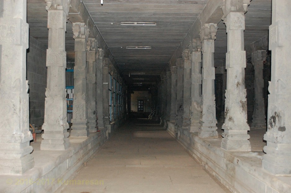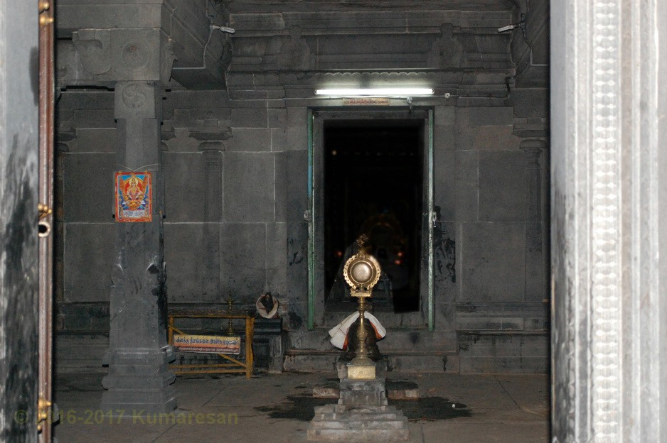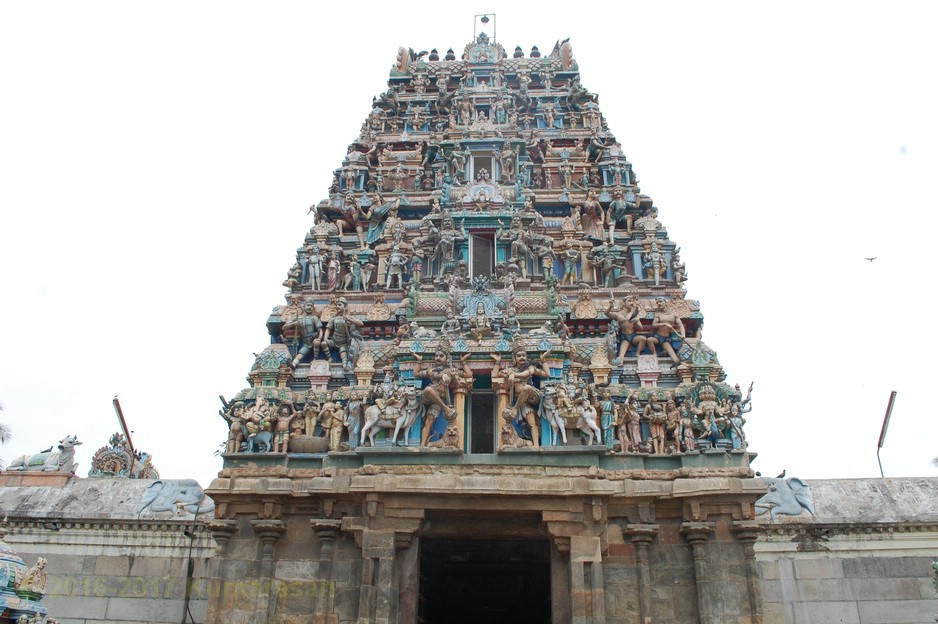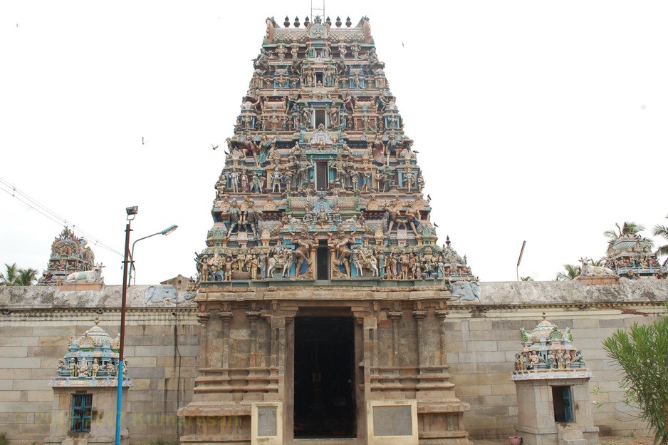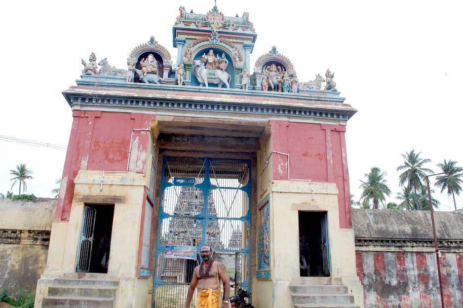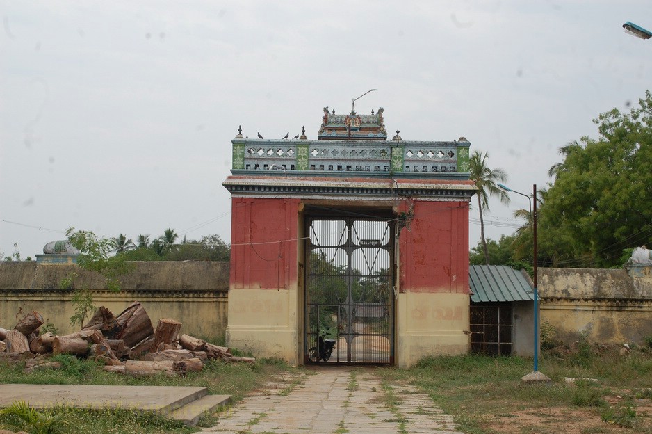 ஒரு முகப்பு வாயிலுடன் கிழக்கு நோக்கி இவ்வாலயம் அமைந்துள்ளது. முகப்பு வாயிலின் மேற்புறத்தே ரிஷபாரூடர், விநாயகர், சுப்பிரமணியர் திருமேனிகள் வண்ணத்தில் சுதையில் அமைக்கப்பட்டுள்ளன. துவார விநாயகர் இருபுறமும் உள்ளார். கோயிலின் முன் பிரம்ம தீர்த்தம் உள்ளது. உள்ளே நுழைந்ததும் விசாலமான முற்றவெளியைக் காணலாம். வலதுபுறம் நந்தவனத்தின் மத்தியில் மகாலட்சுமி சந்நிதி உள்ளது. இரண்டாவது வாயிலிலுள்ள கோபுரம் ஐந்து நிலைகளையுடையது. வாயிலின் இருபுறமும் பொய்யாத விநாயகர், தண்டபாணி சந்நிதிகள் தனித்தனிக் கோயில்களாக உள்ளன. வெளிப்பிராகாரத்தில் சந்நிதிகள் எவையுமில்லை. தெற்கு வெளிப் பிரகாரத்தில் இருந்து 2-ம் பிரகாரத்துள் நுழைய ஒரு மூன்று நிலை கோபுரம் உள்ளது. இதன் வழியே உள்ளே நுழைந்தால் நேரே அம்பாள் சந்நிதி உள்ளது.